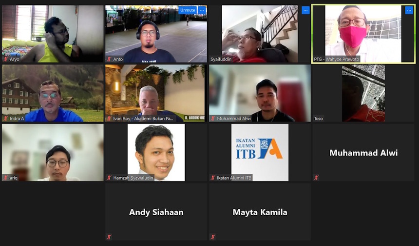 Pengurus PTG IA-ITB diundang Pengurus baru PP IA-ITB yang membidangi olahraga, untuk bincang-bincang awal secara daring pada hari Sabtu, 24 Juli 2021 pagi pkl 09.00- 10.45. Lumayan banyak hal yang diperbincangkan menyangkut PTG yg sudah menjadi salah satu Komisariat di dalam organisasi besar IA-ITB.